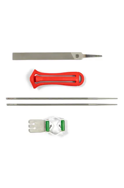 Introducing the File kit by Husqvarna, a complete solution designed to simplify the maintenance of your chainsaw chain. This essential tool ensures that your chain remains sharp, making your work easier and safer. With its user-friendly components, the File kit is perfect for both professionals and DIY enthusiasts.