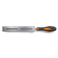 The Husqvarna 2 in 1 Filing Guide is designed to enhance chainsaw maintenance by providing efficient and precise chain sharpening. Its innovative construction allows for simultaneous filing of both cutters and rakers, significantly reducing time and effort. Featuring a colour-coded pitch guide and intuitive symbols for easy use, this tool is perfect for both novice and experienced users looking to maintain their chainsaw with minimal hassle. The quick file replacement mechanism ensures that maintenance is straightforward, making it an essential accessory for any chainsaw owner.