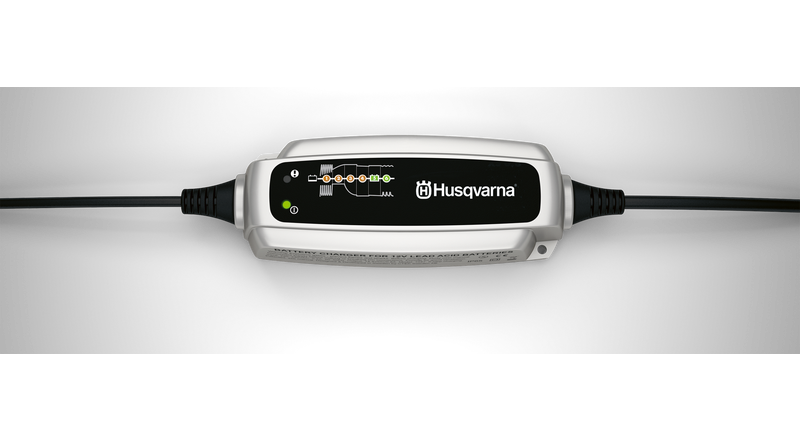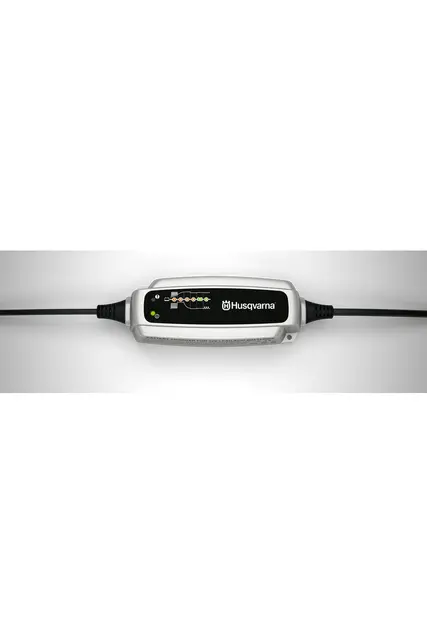 Introducing the Battery charger BC 0.8 by Husqvarna, a reliable solution for maintaining 12V lead-acid batteries from 1.2-32Ah. This fully automatic charger ensures optimal charging and maintenance, maximizing battery life and performance, making it perfect for seasonal vehicles.