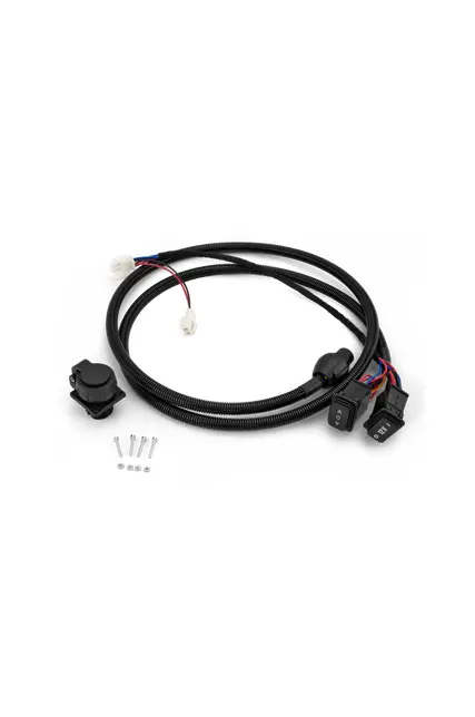 Introducing the Power outlet kit - Rear by Husqvarna, a must-have accessory for all garden tractors and zero turn mowers. This innovative kit includes everything you need to control rear attachments requiring electricity, ensuring easy installation and reliable performance.