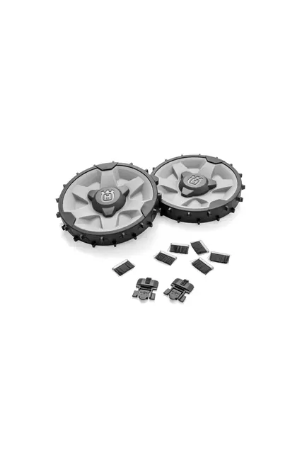 Introducing the Automower® Terrain kit by Husqvarna, designed to enhance the performance of your robotic lawn mower. This essential kit features heavy rear wheels and wheel brushes, providing excellent traction on sloping lawns, making it a must-have for maintaining a pristine garden.