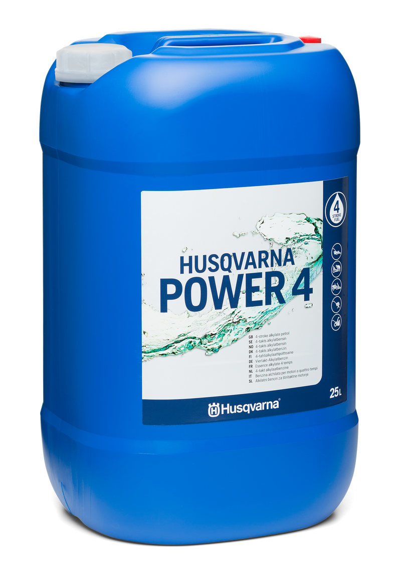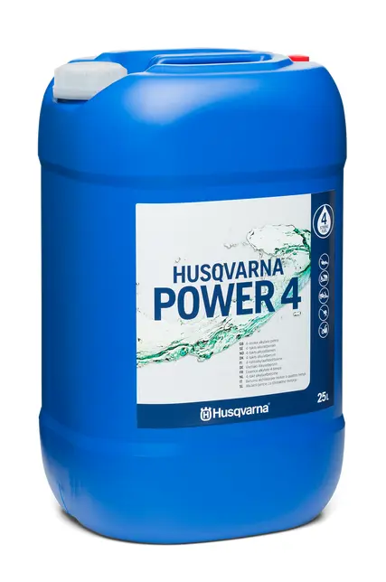 Introducing the Husqvarna Power 4T, a premium alkylate fuel designed specifically for 4-stroke Husqvarna engines. This high-quality fuel minimizes engine deposits, helping to maintain performance and prolong engine life. With its clean-burning properties, it reduces harmful emissions, creating a healthier working environment.