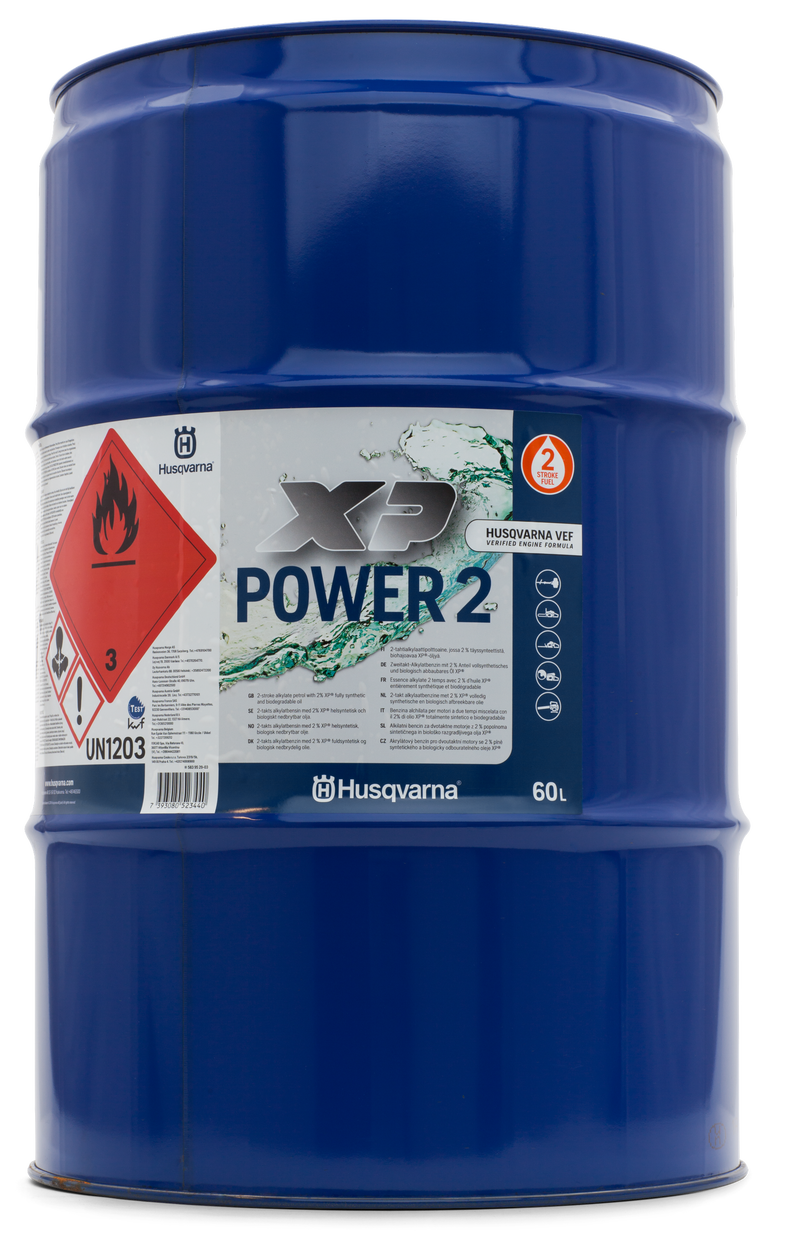 Introducing the Husqvarna XP Power 2T, a premium 2-stroke alkylate fuel mixed with 2% Husqvarna XP 2-stroke oil, specifically formulated for Husqvarna products. This exceptional fuel ensures long-term durability and optimal performance under the toughest working conditions, making it an ideal choice for professionals and enthusiasts alike.