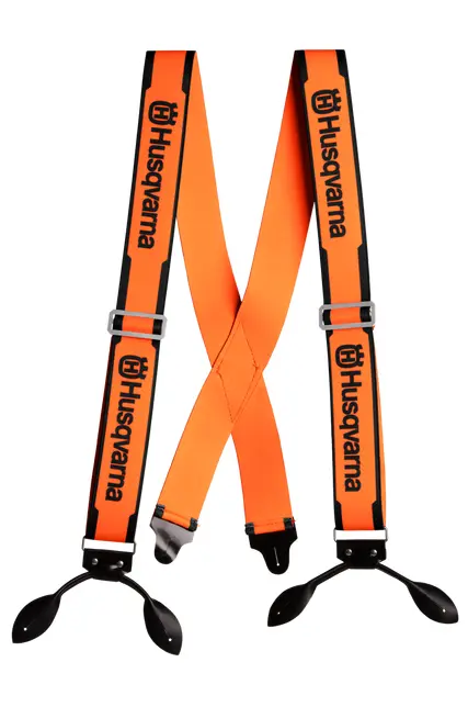 Introducing the Husqvarna Braces, Leather Straps, a must-have accessory for anyone serious about personal protective clothing. Designed for use with chainsaw pants or chaps, these braces feature a professional look that aligns perfectly with the latest styles of pants and jackets. With the Husqvarna logo stitched in fabric, they combine functionality with brand quality.