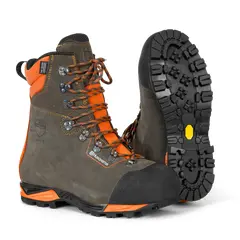 Designed for optimal safety and comfort, these protective leather boots with saw protection from Technical 24 are ideal for professionals working in challenging environments. Featuring a high-performing Vibram® sole for excellent grip on slippery surfaces, a shock-absorbing middle sole for all-day comfort, and a breathable, waterproof Sympatex® membrane, these boots ensure durability and protection. Perfect for those in the forestry and landscaping industries, they provide essential safety features including a steel toecap and reinforced rubber lower part, making them a reliable choice for demanding outdoor tasks.