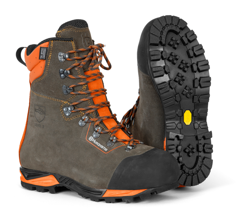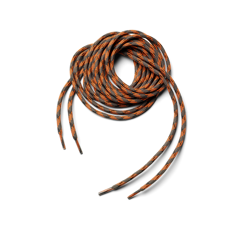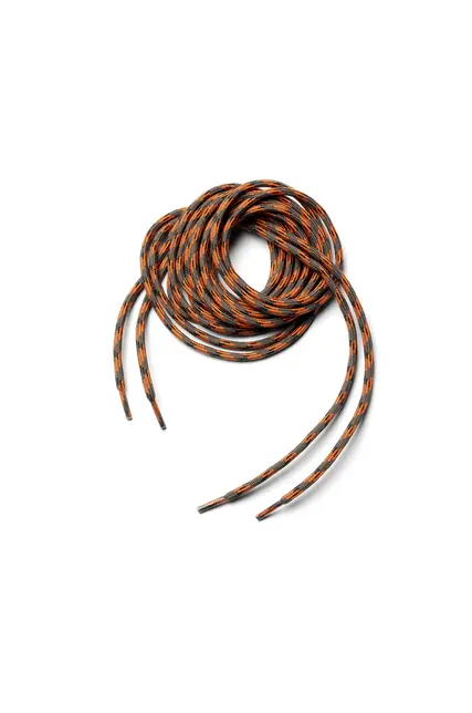 Introducing the Shoelaces by Husqvarna, designed specifically for protective leather boots. These grey and orange shoelaces not only enhance the look of your footwear but also ensure durability and reliability. Perfect for those who prioritize safety and style in their work wear.
