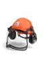 Introducing the Forest helmet, Classic by Husqvarna, a top choice for personal protective clothing. This helmet is designed for forestry and garden work, featuring a traditional six-point plastic harness and one-hand adjustable slip ratchet for a secure fit. With its ergonomic hearing protectors and metal mesh visor, it ensures both comfort and visibility during use.
