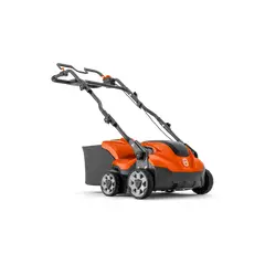 The Husqvarna S 138i is a lightweight, battery-powered scarifier designed for efficient lawn care. It features an intuitive keypad for easy handling, an ergonomic handlebar for comfortable operation, and a dual battery slot for extended use. Ideal for homeowners seeking a powerful solution to remove thatch and moss, this compact machine also includes a dust blocker bag to keep the workspace clean and minimizes carbon emissions during use, making it an environmentally friendly choice.